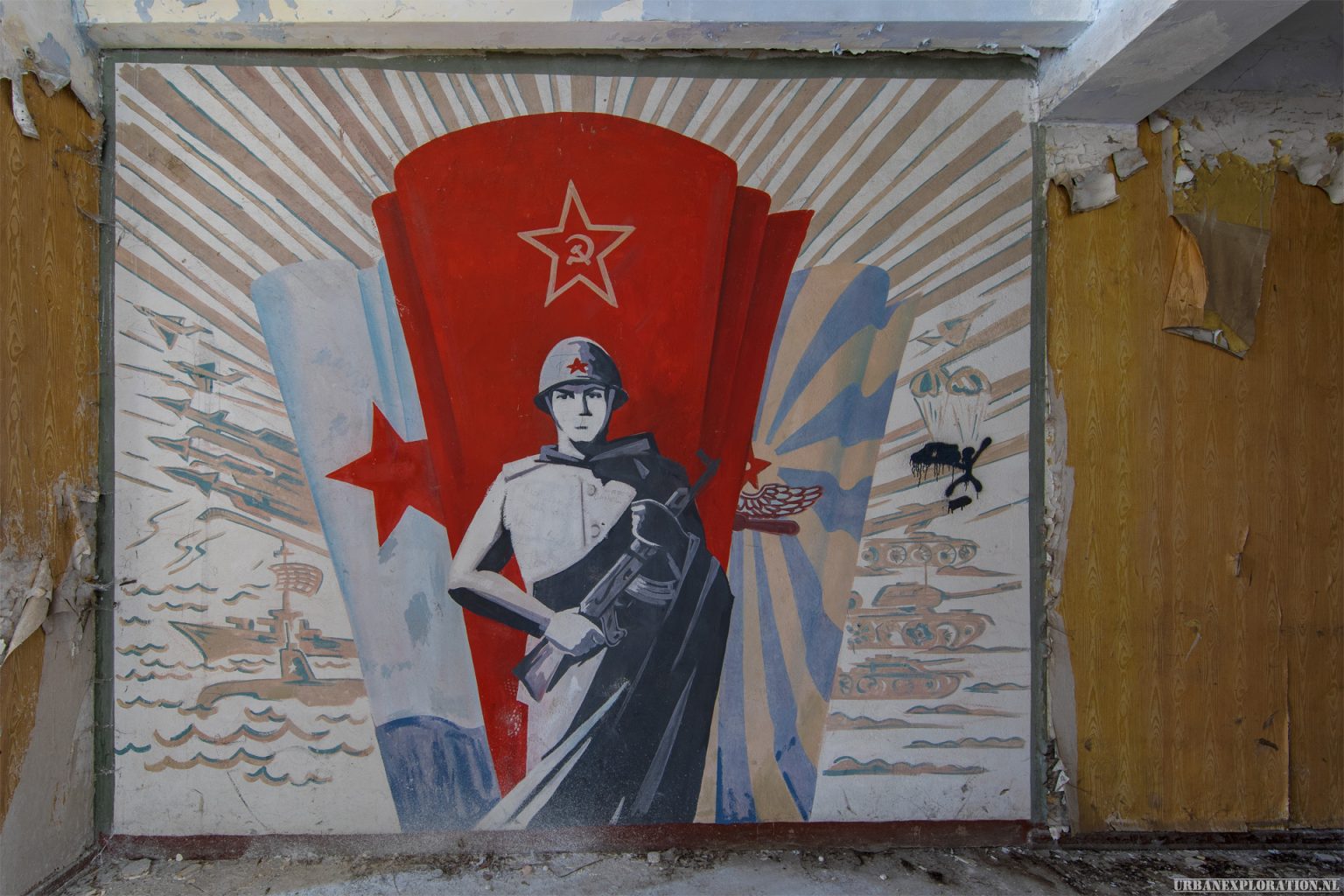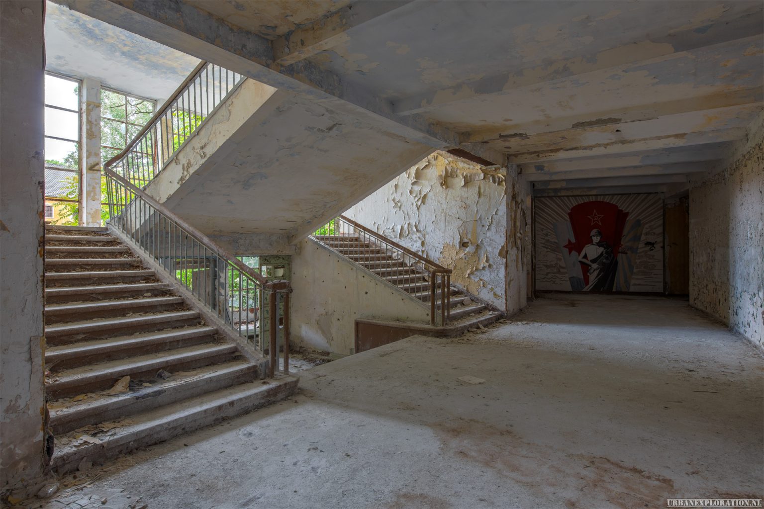 After the end of the Second World War, the use of the site changed dramatically. The area came under the control of the Soviet military and became part of a large military zone. During the Cold War, the complex was used by the Soviet Air Forces, who repurposed several of the buildings for their own military activities. During this period, the characteristic Soviet murals and propaganda artworks were added to the walls, some of which can still be seen inside the buildings today.
