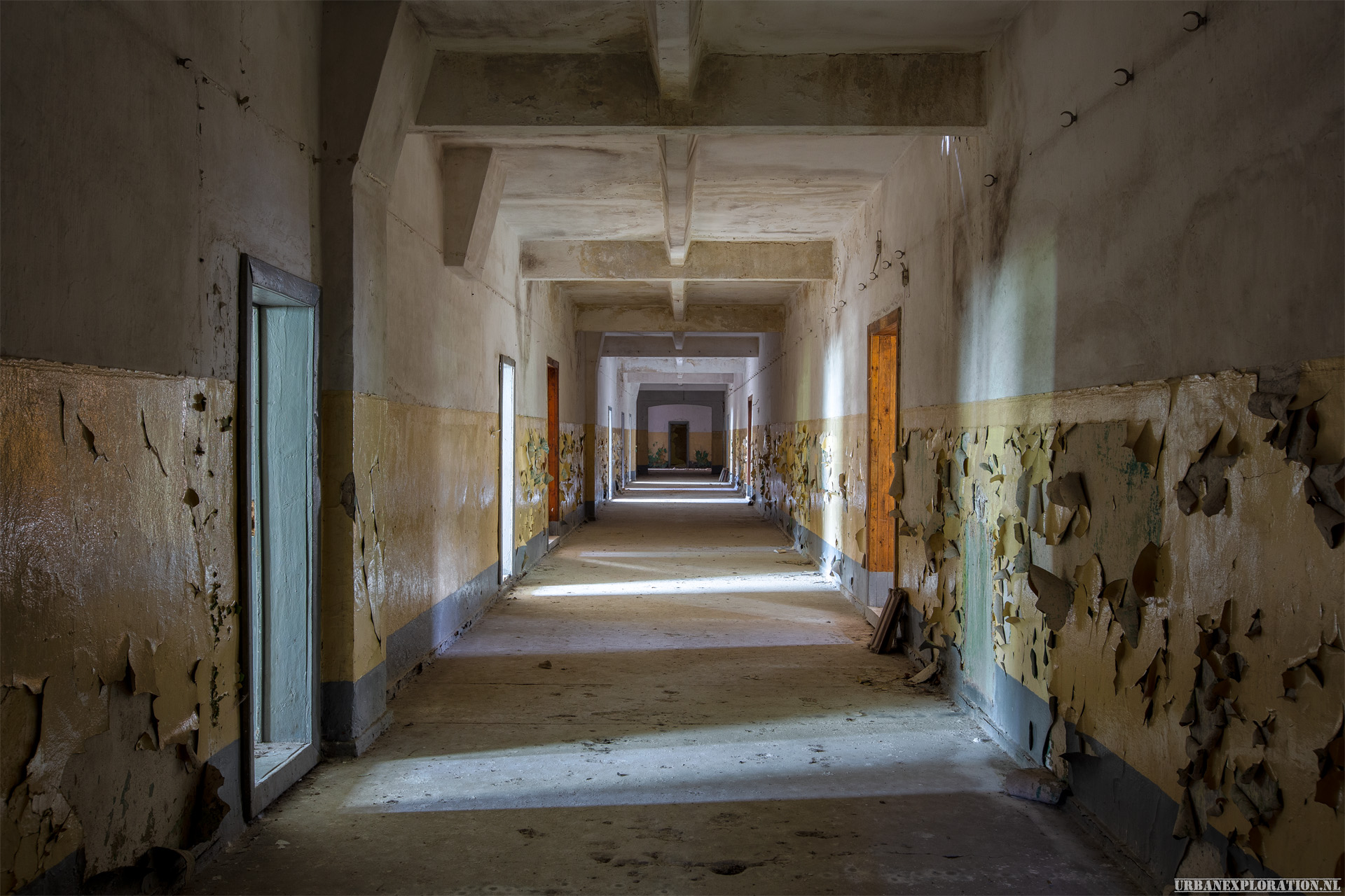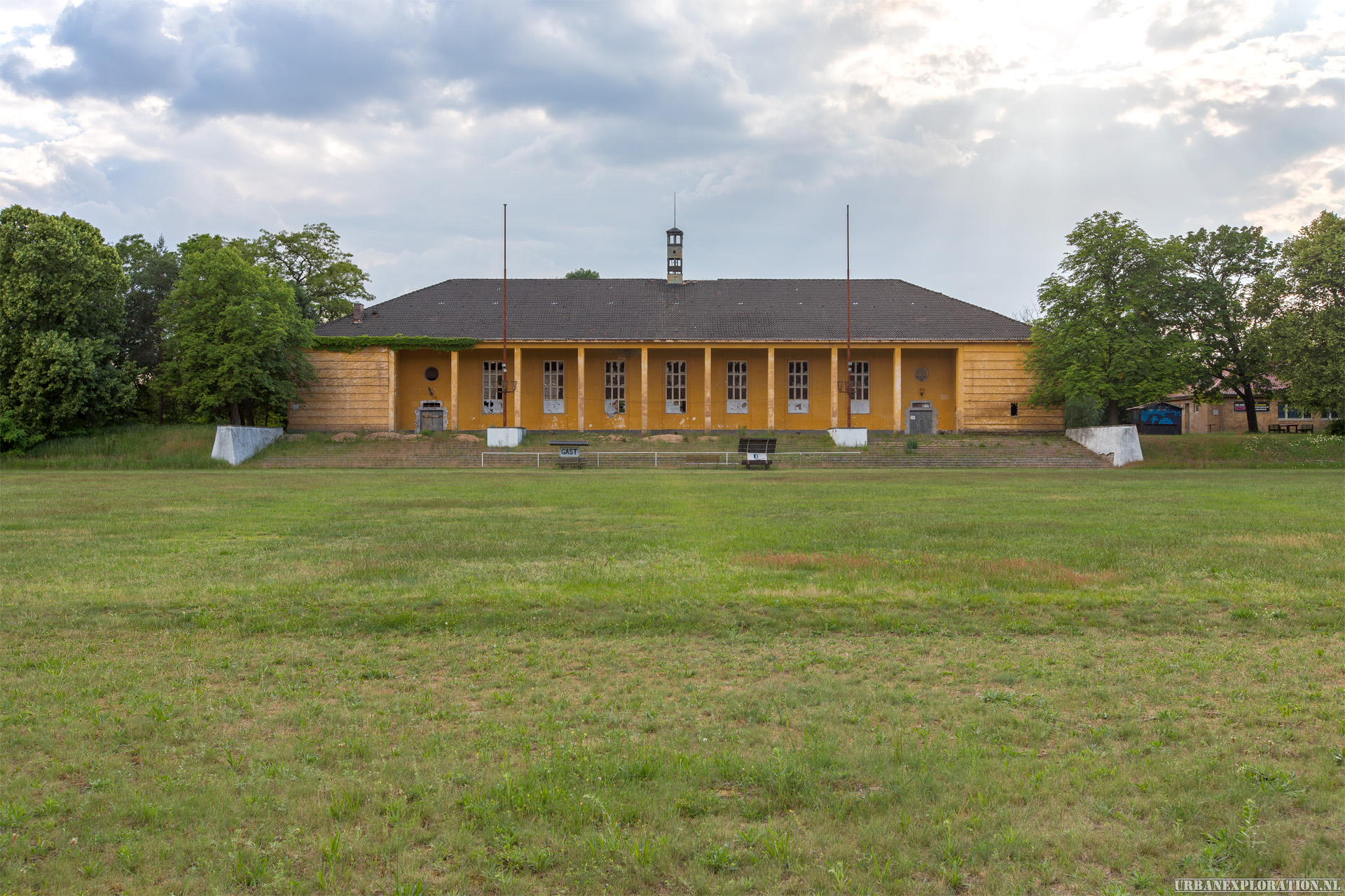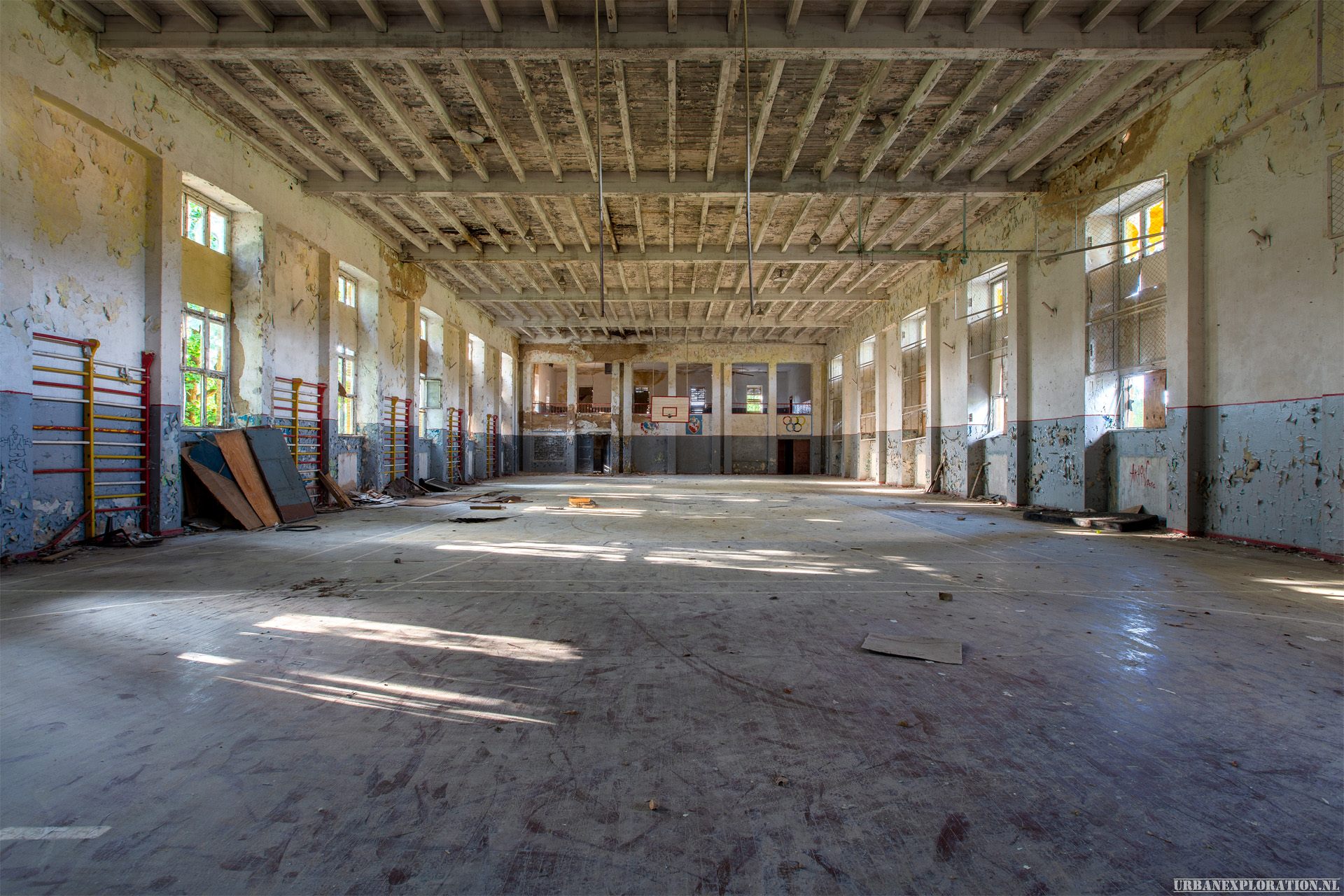 The flight school is a huge abandoned training facility, built by the Nazis to train their pilots. The site, the size of a small town, was later taken over by the CCCP, up until the 1990s when the soviet army left Germany. The buildings are huge and well constructed, and although stripped still contain a few nice features and murals.