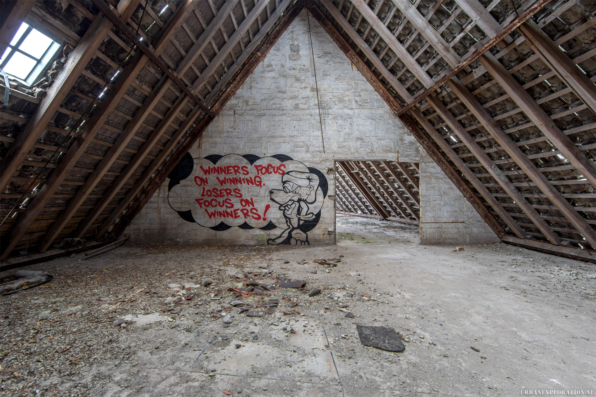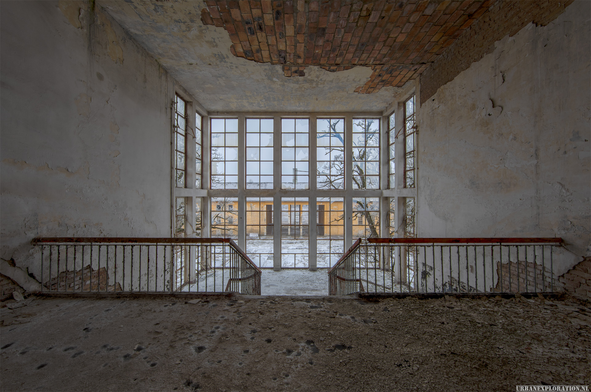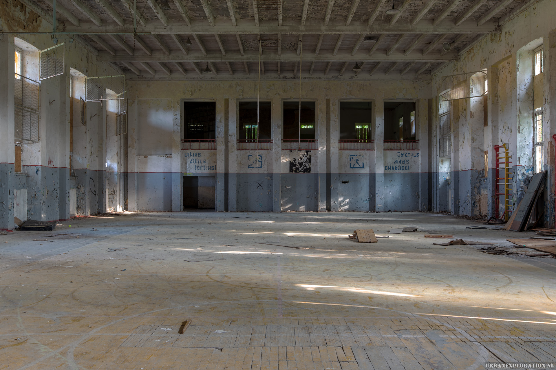 The flight school is a huge abandoned training facility, built by the Nazis to train their pilots. The site, the size of a small town, was later taken over by the CCCP, up until the 1990s when the soviet army left Germany. The buildings are huge and well constructed, and although stripped still contain a few nice features and murals.