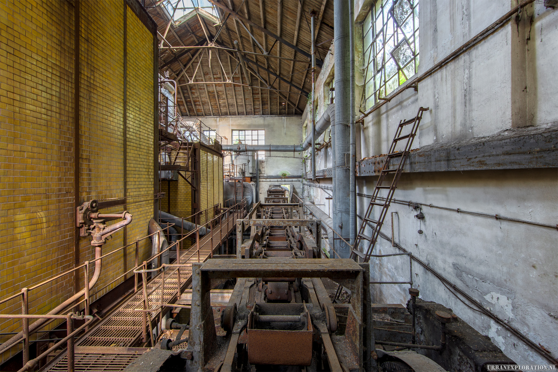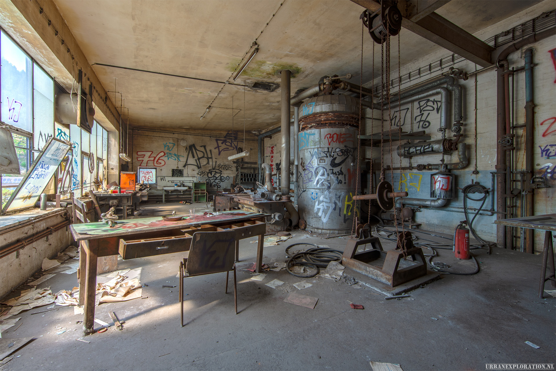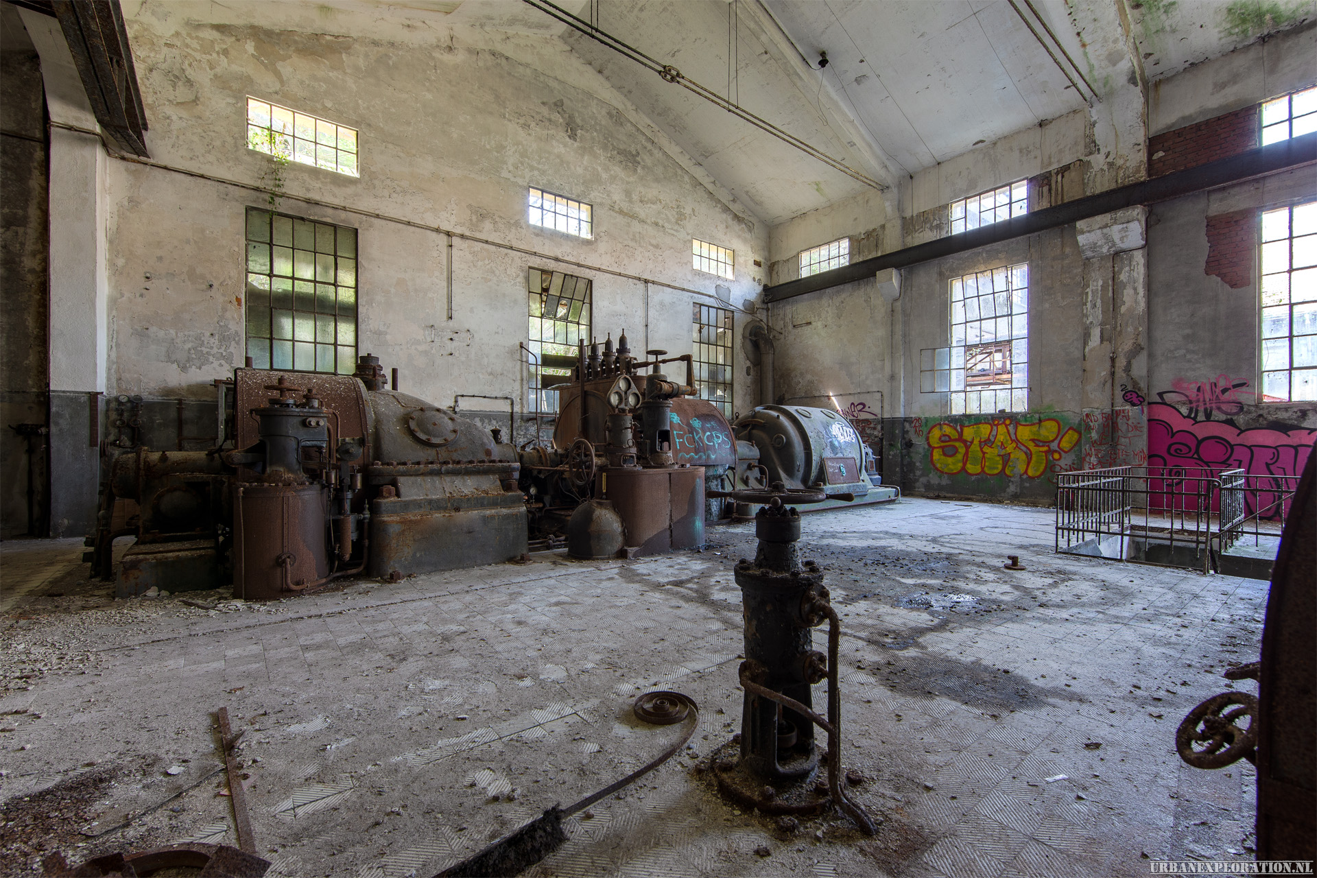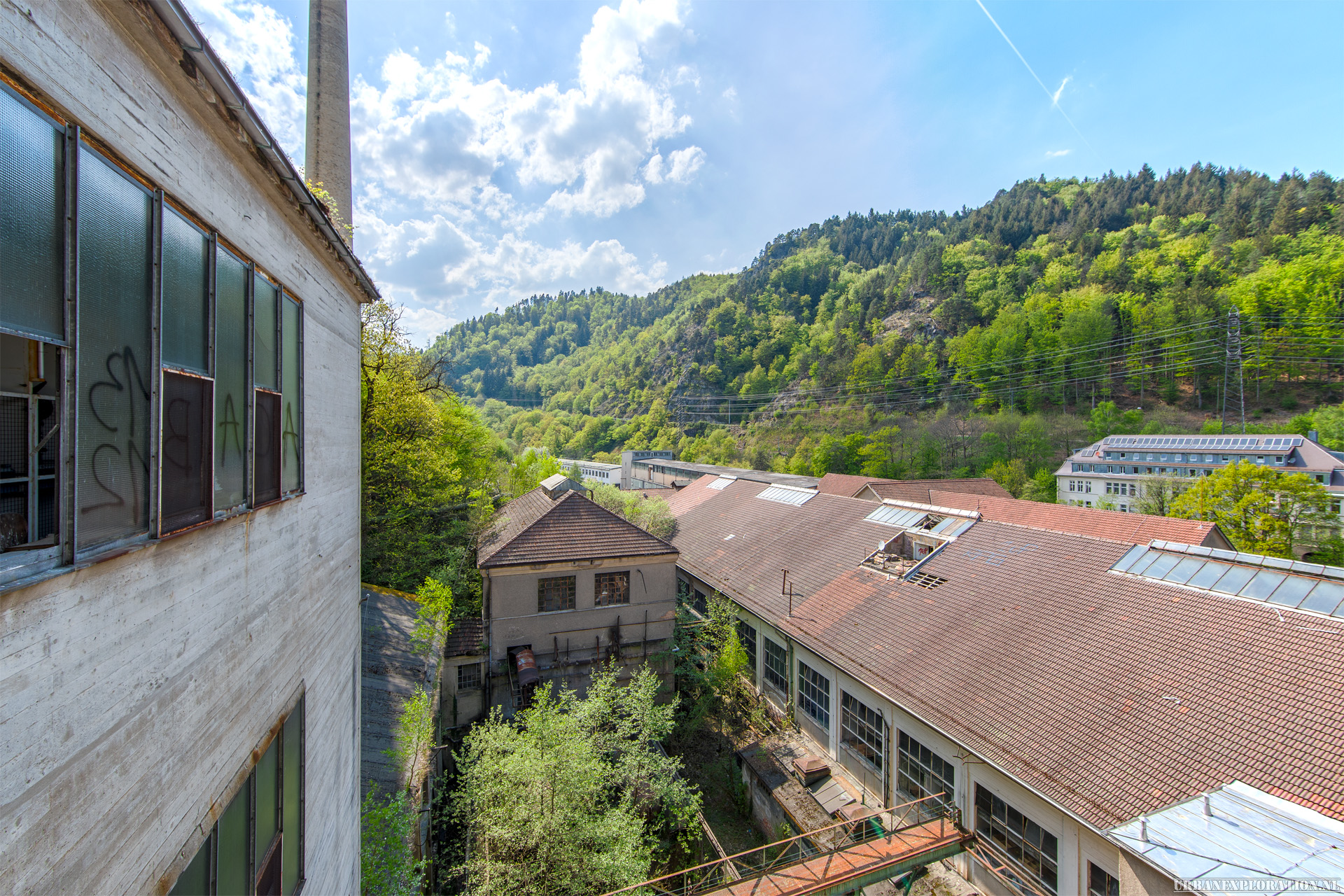 In a narrow valley is this paper mill with attached power plant. Since the paper mill can no longer be operated profitably, it has now been standing still for more than 30 years. Only for the old paper machines could a new site be found in Asia. Allegedly, an Indian businessman bought the company and transported the paper machines to Asia. The remaining investments do not seem to have interested him.