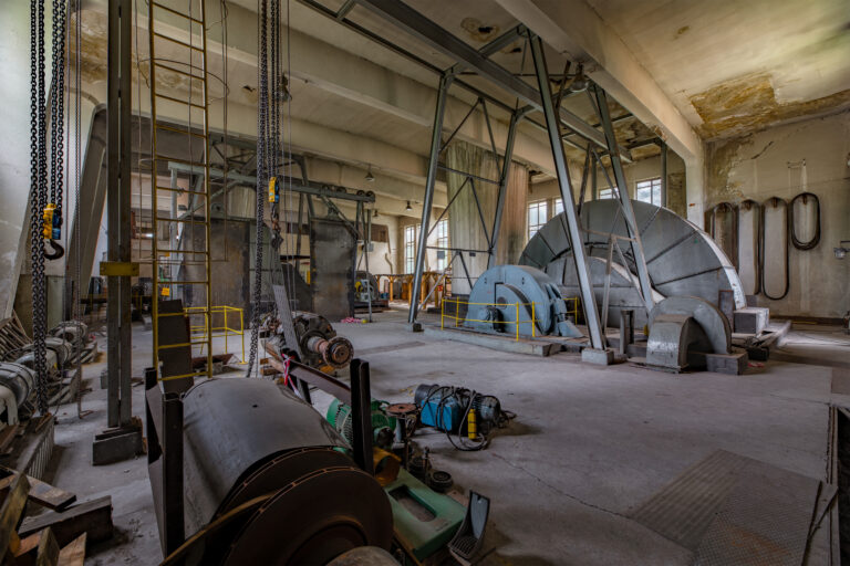 At its peak, this plant formed the beating heart of the factory grounds. Here, electricity and steam were generated to power countless machines, chemical installations, and drying rooms. The tall chimney rose like a sentinel above the complex, visible far across the valley, while inside, the rhythmic hum of turbines and the hiss of steam created the daily symphony of production.