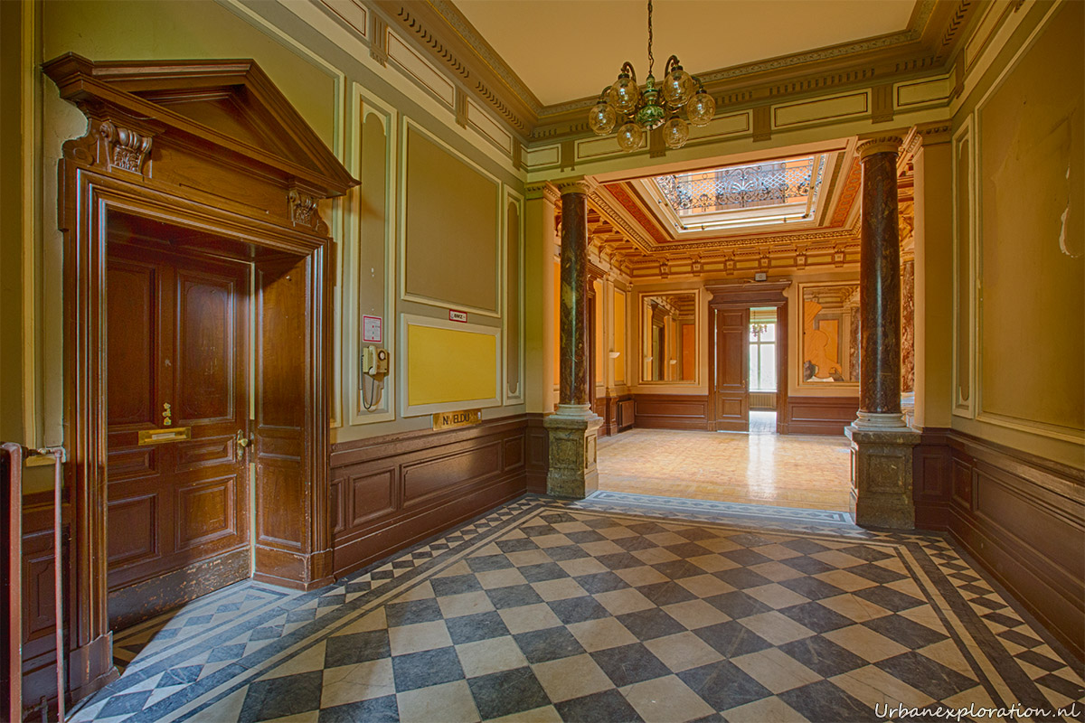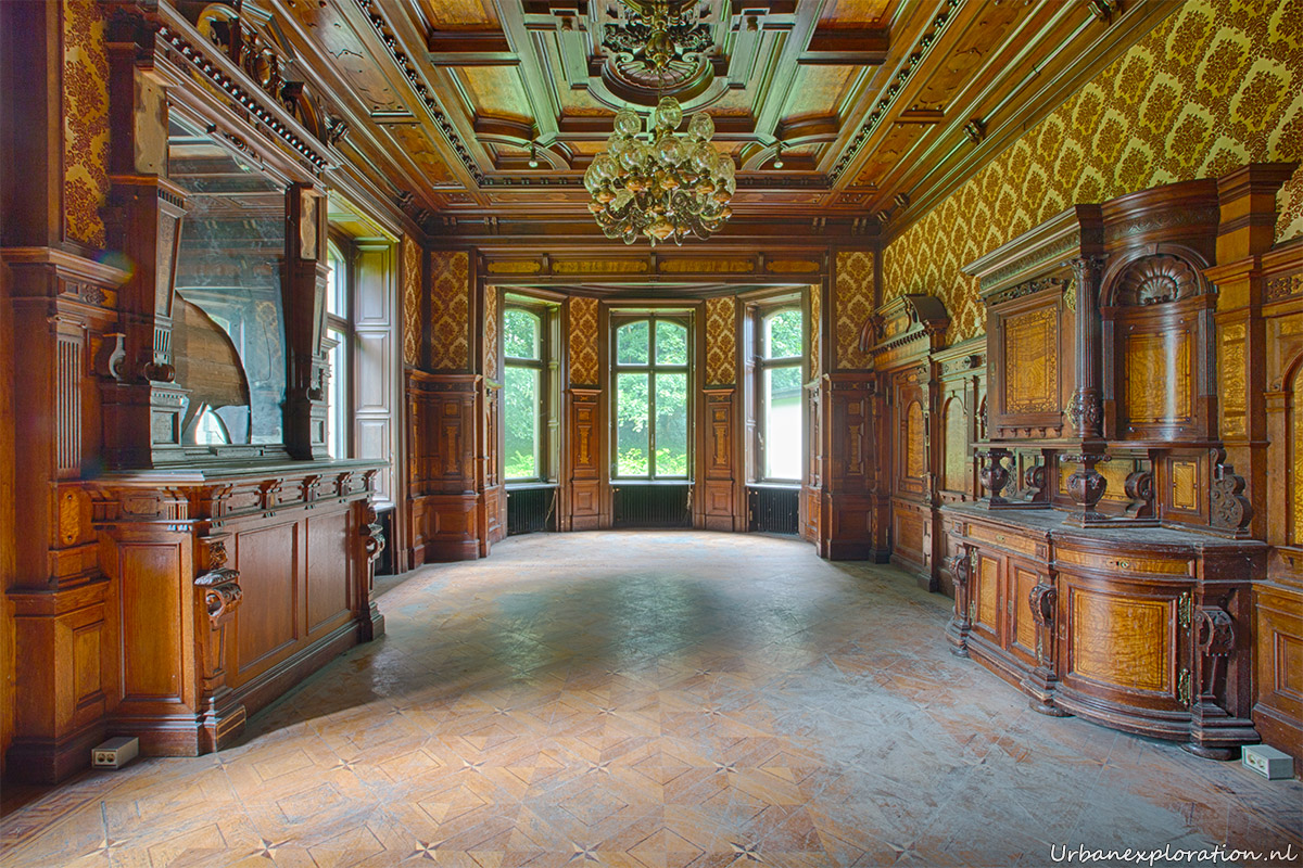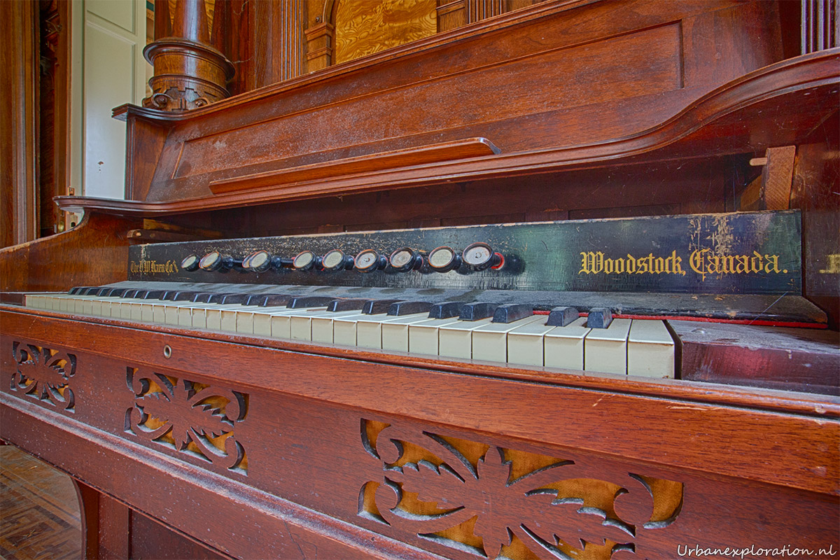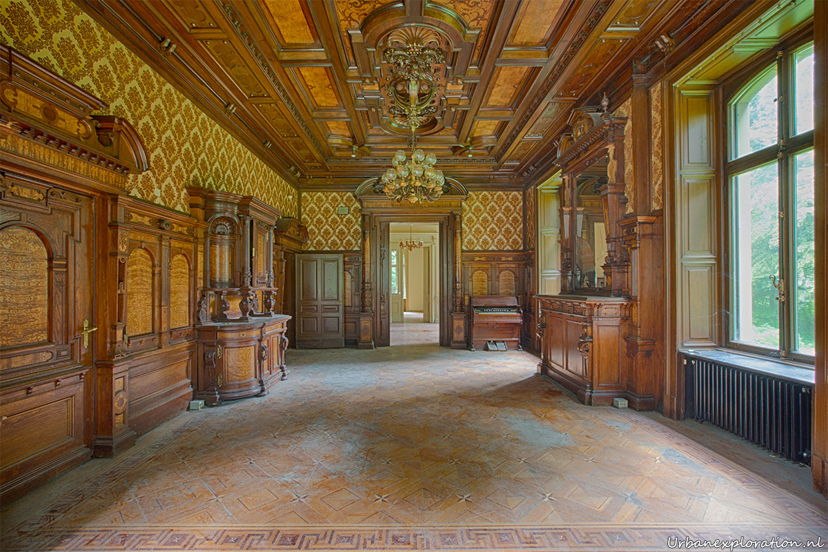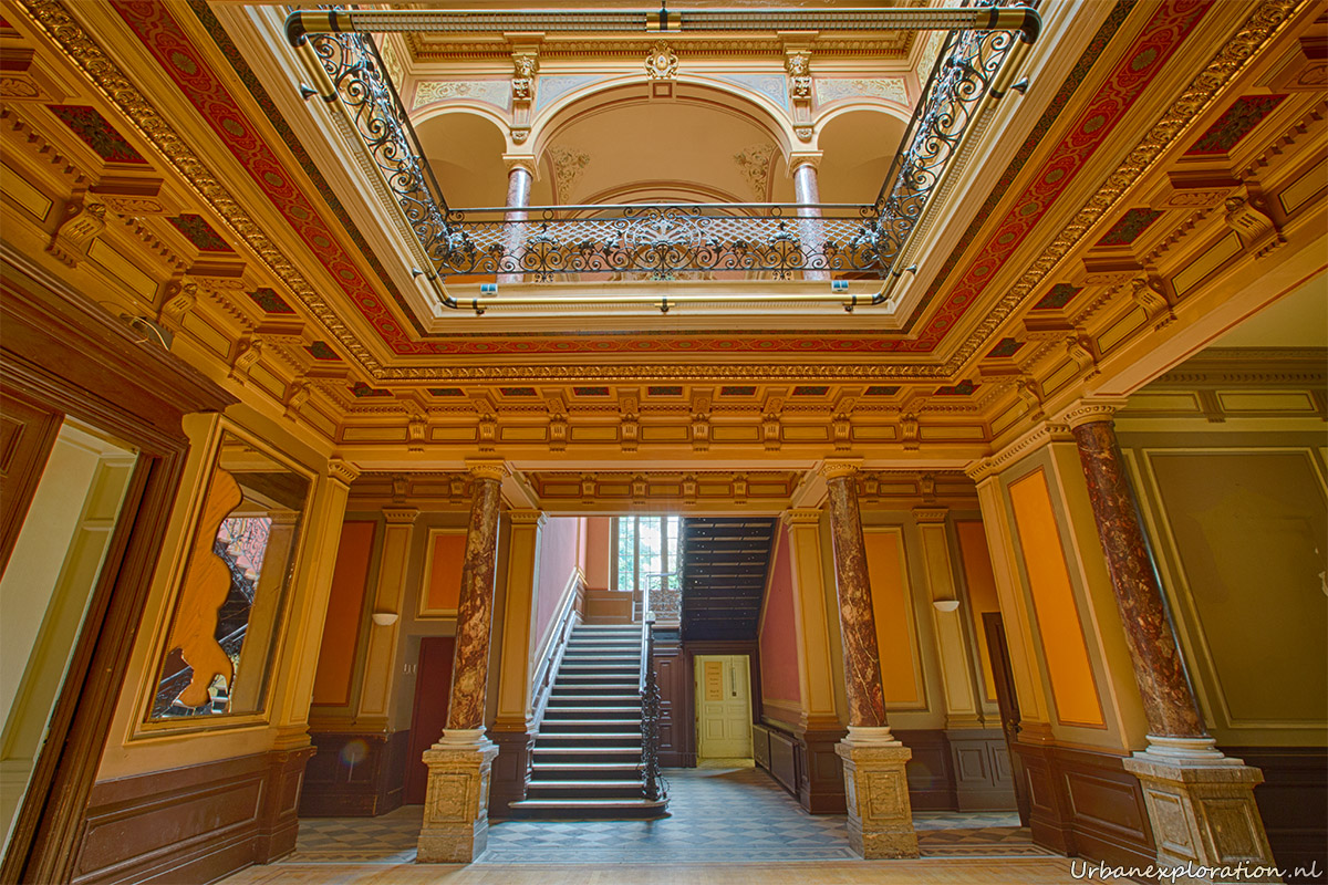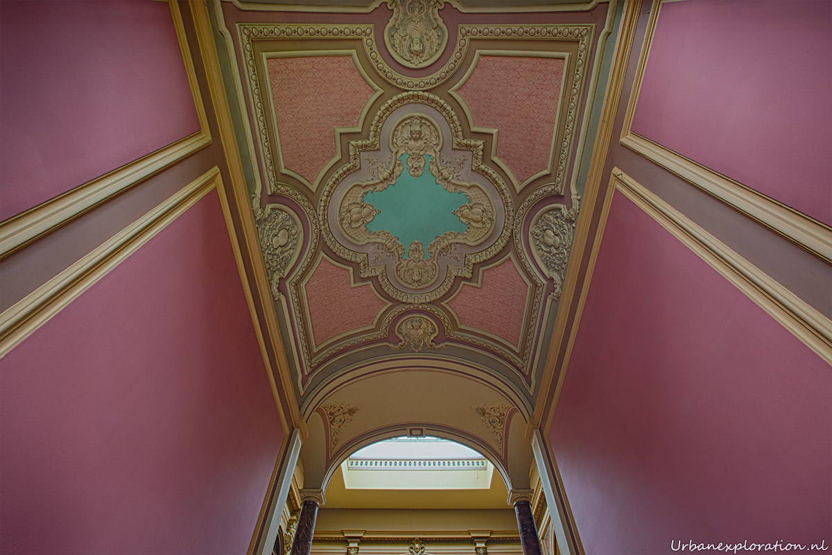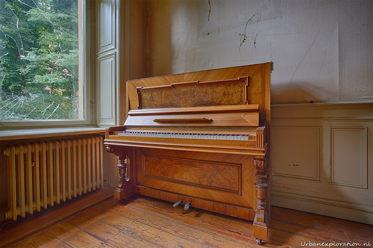 This abandoned grand neo-renaissance styled Mansion was originally a residential dwelling but from the mid 1980’s became a care facility and later a retirement home for the elderly and was linked to the nearby church organisations. Villa Woodstock, as this place is most commonly known, was apparently set for demolition before a private investor stepped in to repurpose the old building. I was unable to find much information about the original owners of the property but it was clear from our visit that the majority of the features of the building have been left in-situ with the bulk of the care facilities being added at the rear of the property in much more modern extensions. Inside there is a spacious entrance hallway which leads on to a 2 story skylight topped hallway which is surrounded with a gallery decorated with wrought-iron handrails. The original serving cabinets were still there and in excellent condition. The adjoining room had an old upright piano, of which I am unsure as to whether this was added by the investor who converted the place or another original feature.